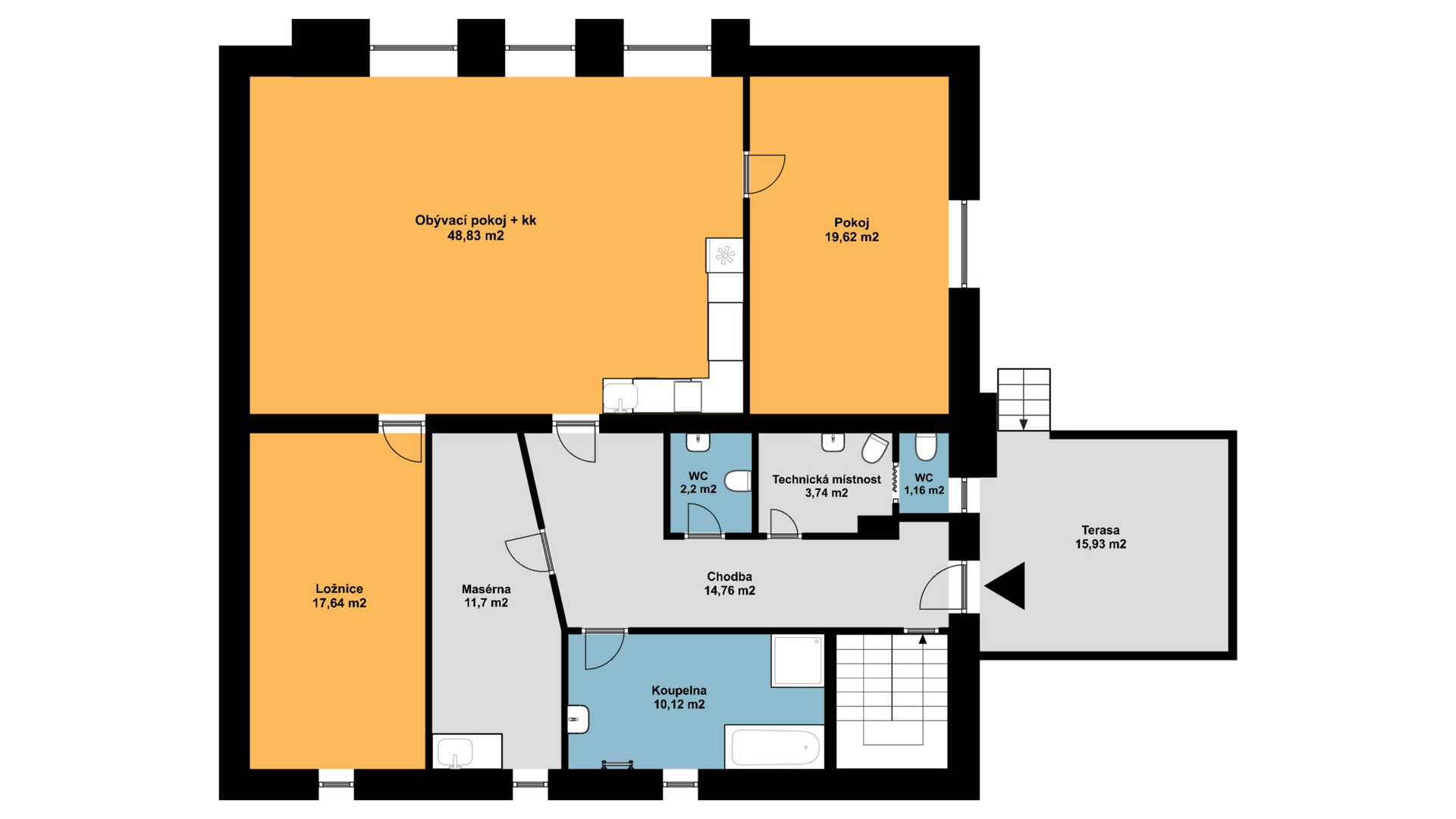 - schodišťový prostor 3,93 m2